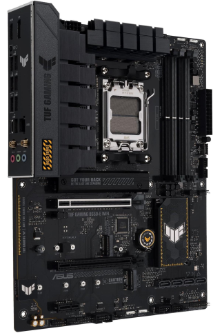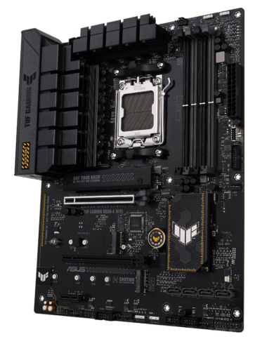 TUF GAMING B650-E WIFI — материнська плата формфактора ATX, спеціально розроблена для геймерів, які шукають високу продуктивність і надійність. Розроблена на основі чипсета AMD B650, оснащена компонентами військового класу, оновленим рішенням живлення та комплексною системою охолодження, що забезпечить її стабільну роботу.