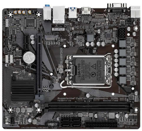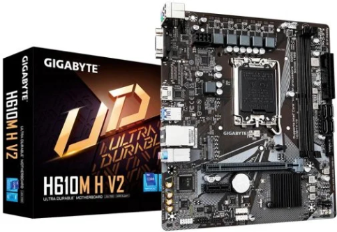 Gigabyte H610M H V2 DDR5 — материнська плата у компактному формфакторі Micro ATX. Ця модель передбачає два DIMM-роз'єми для модулів типу DDR5 з максимальним обсягом пам'яті 96 ГБ. Призначена для процесорів Intel Core 12-13 покоління.