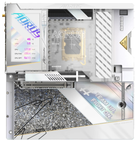- анімований дисплей AORUS на алюмінієвій кришці вводу/виводу.