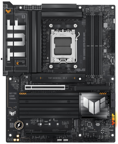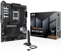 ASUS TUF GAMING X870-PLUS WIFI — материнська плата формфактора ATX, що увібрала в себе всі основні елементи новітніх процесорів AMD Ryzen разом з ігровими функціями та перевіреною довговічністю. Завдяки компонентам військового класу, модернізованій системі живлення та комплексній системі охолодження вона забезпечує надійну та стабільну продуктивність для марафонських ігор. Ця платформа надає необхідну потужність і можливості підключення, яких вимагають сучасні програми для ПК зі штучним інтелектом.