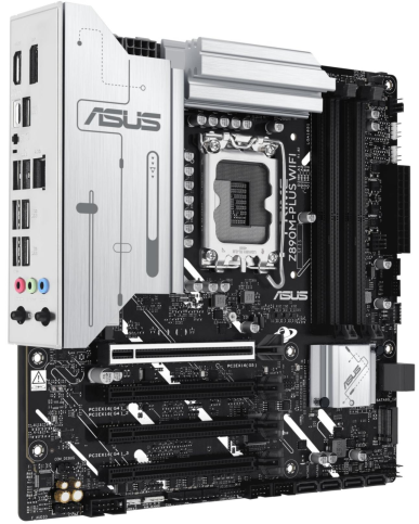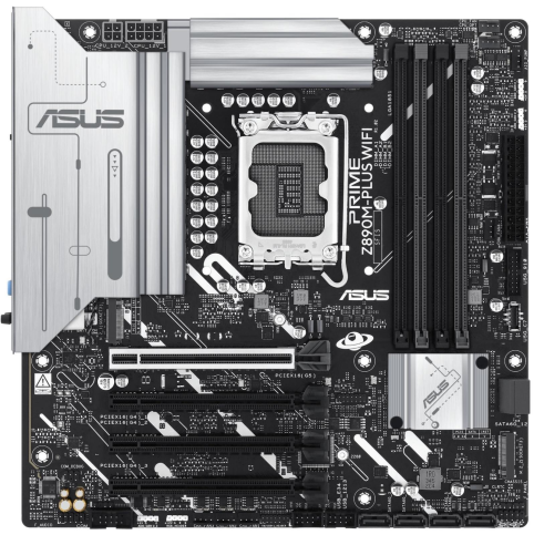 ASUS PRIME Z890M-PLUS WIFI — материнська плата формфактора micro ATX з відбірними елементами та розширеними функціями. Завдяки надійній конструкції, комплексній системі охолодження та інтелектуальним можливостям налаштування ця модель надає користувачам і збирачам ПК цілий ряд можливостей для оптимізації продуктивності. Вона гарантує потужність і можливості підключення, яких вимагають сучасні програми для ПК зі штучним інтелектом.