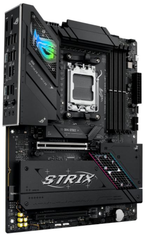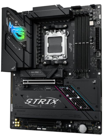 ROG Strix B850-F витончений і стриманий, що дозволяє легко поєднувати його з широким спектром системних компонентів. Його темно-чорна друкована плата та відповідні металеві радіатори створюють темний і насичений вигляд, а легке RGB-підсвічування на кожусі вводу/виводу дає змогу залишатися поза увагою радара або робити сміливі заяви.