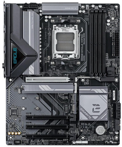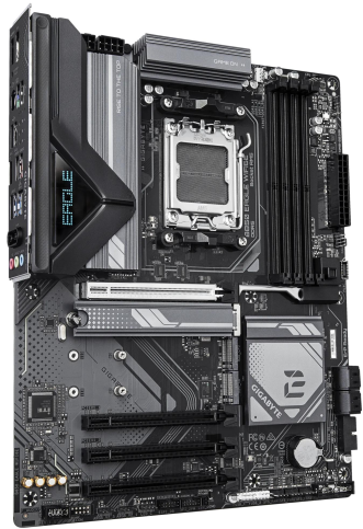 Gigabyte B850 EAGLE WIFI6E — материнська плата формфактора ATX, призначена для встановлення новітніх процесорів AMD, які сумісні із сокетом B850. Підтримує оперативну пам'ять DDR5, для планок передбачено 4 слоти з можливістю встановлення до 256 ГБ. Має всі необхідні роз'єми для встановлення накопичувачів швидкісного типу, відеопорти для підключення мультимедійних пристроїв. А також підтримує дротове підключення GbE LAN та Wi-Fi 6E, що гарантує хорошу швидкість передавання для онлайн-ігор.