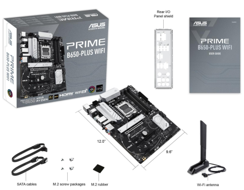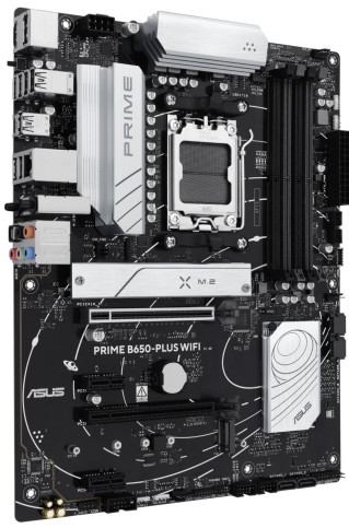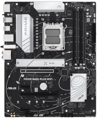 Asus PRIME B650-PLUS WIFI — материнська плата формфактора АТХ. Оснащена сокетом AM5, підтримує швидкісну пам'ять та має широкий набір інтерфейсів. Дозволяє встановлювати 192 ГБ оперативної пам'яті DDR5, використовуючи 4 слоти для планок.