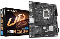 Gigabyte H610M D3W DDR4 — материнська плата формфактора Micro ATX, призначена для встановлення новітніх процесорів Intel Core 12-14 покоління, які сумісні із сокетом LGA 1700. Підтримує оперативну пам'ять DDR4, для планок передбачено 2 слоти з можливістю встановлення до 64 ГБ. Має всі необхідні роз'єми для встановлення накопичувачів швидкісного типу, відеопорти для підключення мультимедійних пристроїв.
