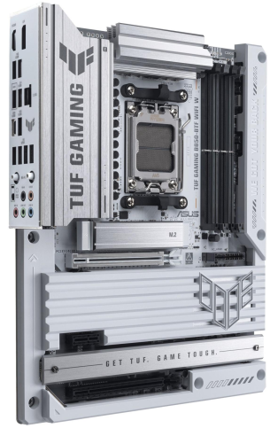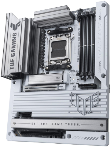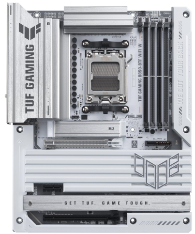 ASUS TUF GAMING B850-BTF WIFI W — материнська плата формфактора ATX, яка підтримує новітні процесори AMD Ryzen серій 9000, 8000 та 7000. Завдяки інноваційному дизайну BTF (Back To the Future) усі конектори розташовані на зворотному боці плати, що забезпечує чистий вигляд і зручне керування кабелями. Ця модель створена для забезпечення високої продуктивності та стабільності для ігрових і AI-систем.