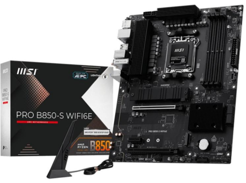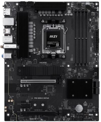 MSI PRO B850-S WIFI6E — це сучасна материнська плата формату ATX, створена для процесорів AMD Ryzen 9000, 8000 і 7000 серій, що поєднує високу продуктивність із підтримкою передових технологій. Її простий чорний дизайн ідеально підходить для професійних і геймерських систем, забезпечуючи стабільність і зручність у складанні. Плата оптимізована для роботи з AI-застосунками та забезпечує легке налаштування для користувачів.