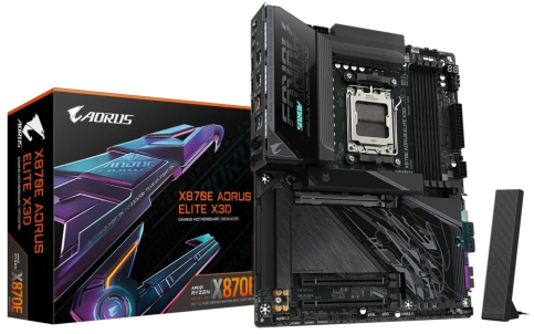 Gigabyte X870E AORUS ELITE X3D — це материнська плата формату ATX на чіпсеті AMD X870E з сокетом AM5 для процесорів AMD Ryzen 9000, 8000 та 7000 серій. Вона поєднує AI-оптимізовану продуктивність із X3D Turbo Mode 2.0, розширені можливості підключення та ефективне охолодження для геймерів і ентузіастів.