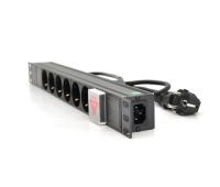 Merlion 6 розеток, 19", 1U, з вимкн., з адаптером живлення C13, 1.8 м (1U-M6-K-C13/15154)