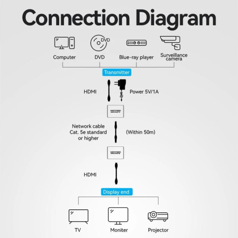 via UTP up to 60m w/Power adapter(RX/TX) V1.4 1080p 60Hz 3D DD7.1 Vention (AKGH0-EU)
