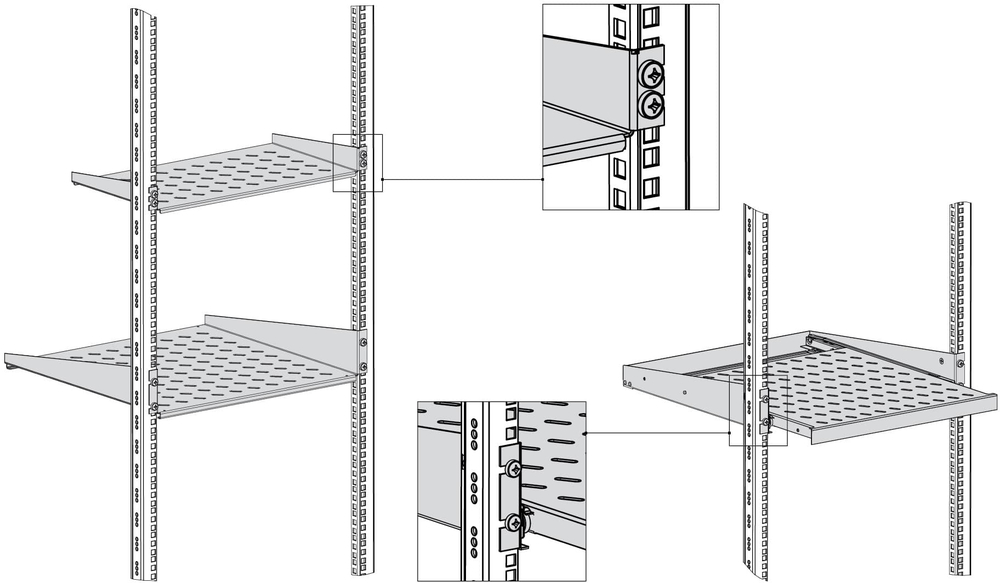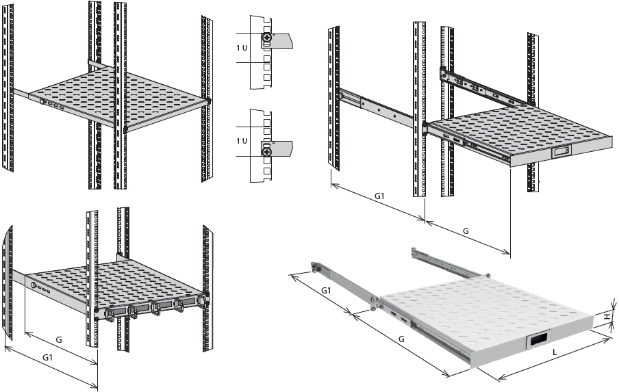 ZPAS 19", 1U, висувна, глибиною 450-550 мм, сіра W-5841-25-03-550-011