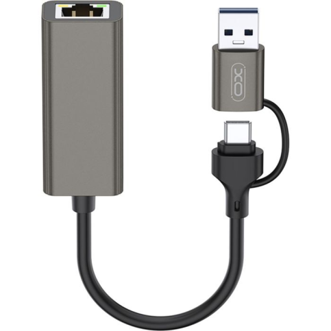 USB-C + USB A to RJ45 Ethernet 100Mbps XO (HUB018.black)