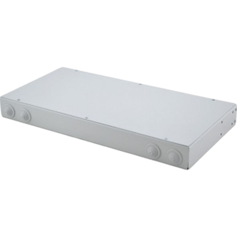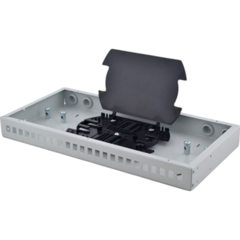 На лицьовій поверхні розміщені 24 отвори для установки оптичних адаптерів типу SC (або 24 дуплексних адаптера типу LC). Для вводу кабелів є 4 отвори на задній стінці корпусу. Ці отвори закриті заглушками, які оберігають від попадання пилу, комах, павуків і т.п. всередину. Вони виготовлені з гнучкого пластикату, і їх можна легко адаптувати під введення кабелю потрібного діаметру. Введені кабелі можуть кріпитися за допомогою металевих або пластикових хомутів до спеціальних зачепів на дні корпусу. Для кріплення силових елементів кабелю передбачені окремі фіксатори.