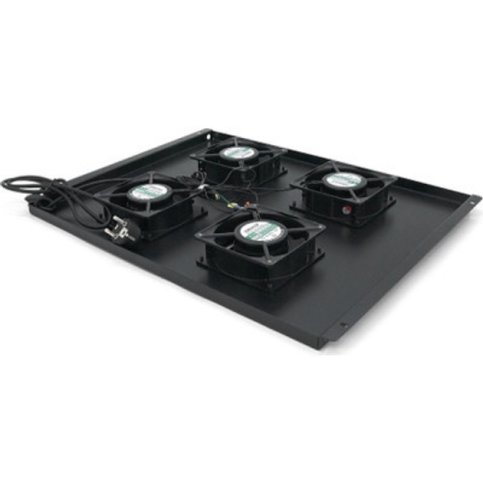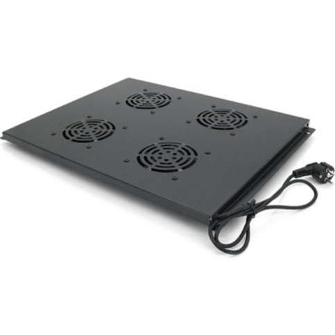 19" вентиляторний модуль Merlion, 4 вентилятори з цифровим термостатом та 1*Shuko, для шафи глибиною 800 мм, чорний