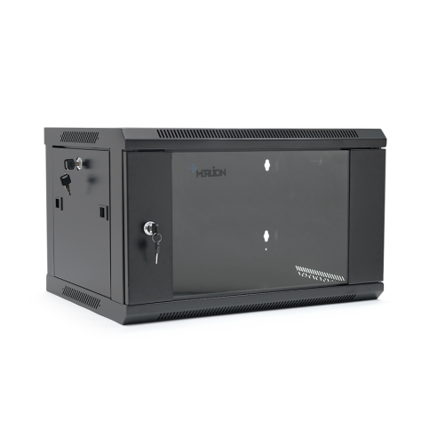 Шафа Merlion 4U, 600*350*279 (Ш*Г*В)мм загартоване скло, чорна, сталь 1,2мм, із замком (у розібраном