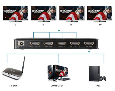 Цей міні-розгалужувач HDMI 1x4 4K використовує одне джерело HDMI для доступу до декількох приймачів HDMI. Він дозволяє легко розділити один пристрій HDMI на чотири HDMI-сумісних монітора або проектора. Крім того, його також можна розмістити в кінці довгого HDMI кабель для регенерації сигналу HDMI. Дозвіл цього міні HDMI спліттера може бути до 3840X2160 / 30 Гц. Характеристики: Версія HDMI: 1.4b Підтримка 3D відео формат Підтримка високого дозволу до 3840x2160 / 30Hz Підтримка глибокого кольору 8/10/12 bit Підтримка аудіоформатf DTS - HD / Dolby - trueHD / DTS / Dolby - AC3 / DSD Максимальна пропускна здатність 340MHz Максимальна швидкість передачі 3.4Gbps Підтримка AWG26 HDMI кабелю: вхід до 15 метрів, вихід до 15 метрів (при дозволі 4К, вхід до 8 метрів, вихід до 8 метрів) Максимальний робочий струм 1200mAh Підтримка одного джерела HDMI, доступ до декількох приймачів HDMI, джерелом може бути DVD-плеєр, A / V-ресивер, телевізійна приставка і т. д. Адапт р харчування 5V Розмір: 140х55х16 мм Вага: 203 г Розмір в упаковці: 205x145x55 мм Вага в упаковці: 388 г Комплектація: спліттер, адапетр харчування, інструкція