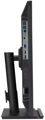 Монітор пропонує широкі можливості підключення: HDMI, DisplayPort, VGA, 3.5 мм аудіовихід і чотири USB-A порти для зручного під’єднання периферії. Вбудовані 2x2 Вт стереоколонки забезпечують базовий звук для мультимедіа чи відеоконференцій, хоча для ігор рекомендується використовувати зовнішні аудіосистеми. Ергономічна підставка дозволяє регулювати висоту (150 мм), нахил (-5°/+35°), поворот у горизонтальній площині (±180°) і pivot (90°), а підтримка VESA 100×100 дає змогу монтувати дисплей на стіну чи кронштейн. Безрамковий дизайн сприяє створенню мультимоніторних конфігурацій.