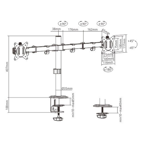 - сумісний зі стандартами VESA (100 x 100 мм і 75 x 75 мм);