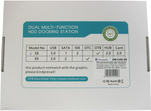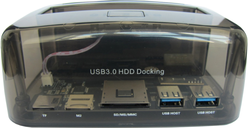 Док-станція Dynamode DM-CAD-S8 призначена для двох жорстких дисків HDD 2.5"/3.5" SATA/IDE, а також для накопичувачів SSD, інтерфейс передачі даних USB 3.0. Док-станція має також 2 додаткові порти USB 2.0 для підключення різних USB-пристроїв та кардрідер на 3 слоти для карт пам'яті TF/M2/SD на передній стороні корпусу, а також дуже стильний, повністю прозорий корпус, приємний на дотик. За допомогою док-станції DM-CAD-S8 ви можете легко підключати будь-які HDD диски та накопичувачі SSD SATA 2.5" до вашого комп'ютера або ноутбука через порт USB, проте дана док-станція не має вбудованої функції клонування дисків. Просто вставляйте диски та виймайте їх з док-станції без будь-яких додаткових інструментів.