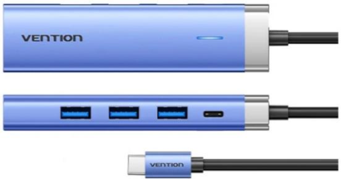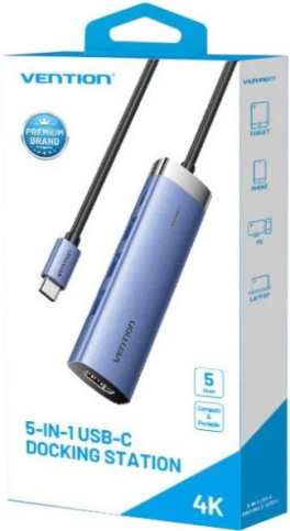 Багатофункціональна док-станція 5-in-1 від Vention допоможе значно розширити можливості вашого ПК, ноутбука чи смартфона. Три порти USB Туре-А дозволяють підключити необхідне для роботи USB-пристроїв та здійснювати обмін даними на швидкості до 5 Гб/с. Є порт USB Туре-С, який підтримує протокол швидкої зарядки PD та заряджає підключені пристрої з максимальною потужністю 100 Вт.