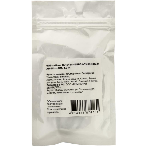Defender (87473) USB08-03H USB 2.0 - Micro USB, 1.0m