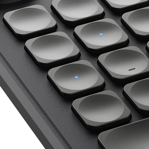 Ключ до ефективності Забудьте про клавіатуру та насолоджуйтесь високою ефективністю з Mini Keydial K20. Спеціальна клавіатура для однієї руки може бути повністю налаштована під ваш робочий процес та заощаджує робочий простір. Насолоджуйтесь збалансованим натисканням клавіш Клавіатура Mini Keydial K20 забезпечує плавне натискання клавіш з усіх боків. Зменшений загальний інтервал між кнопками дозволяє ефективно зменшити втому пальців. Натхнення не припиняється Міні-клавіатура K20 має поворотний регулятор для підвищення ефективності під час роботи. Вона не тільки сумісна з протоколом Windows Radial Controller Protocol, що дозволяє користуватися радіальним меню та додатками, але й може бути налаштована на різні функції за допомогою налаштувань драйвера Huion. Налаштуйте всі клавіші Ви можете налаштувати всі клавіші на свій смак, і ми також пропонуємо ці клавіші зі стандартними функціями в режимі без драйвера. Прямокутник для шульг і правшей Завдяки симетричній прямокутній формі Mini Keydial має ергономічний та зручний дизайн, який підходить як для шульг, так і для правшів. На столі чи планшеті Ви можете розмістити клавіатуру Mini Keydial K20 на робочому столі або на моніторі під час роботи. 4 нековзні гумові ніжки на задній панелі K20 забезпечують чудову стійкість під час натискання клавіш. Тримайте контроль Mini Keydial K20 має бездротову функцію та забезпечує відстань з'єднання 5-10 м, що робить ваш робочий простір більш гнучким. Акумулятор ємністю 1200 мАч забезпечує близько 100 годин безперервної роботи. Ви також можете підключати та заряджати його через порт USB-C. Більше налаштувань, більше сумісності Ви можете налаштувати гарячі клавіші всіх клавіш за допомогою драйвера версії V15, а також встановити різні гарячі клавіші для різних програм. Крім того, K20 не тільки сумісний із продуктами Huion, але й може використовуватися з іншими ноутбуками та планшетами для малювання, щоб забезпечити вам більшу зручність. Сумісність: Графічні планшети Графічні монітори Графічні комп'ютери