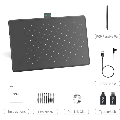 Parblo Ninos N10 — компактний графічний планшет з активною площею 10x6.25" дюймів. У ньому використовується бездротова технологія електромагнітного резонансного пера та підтримується можливість нахилу пера на ± 60°. Це чудовий вибір для того, хто бажає навчитися малювати.