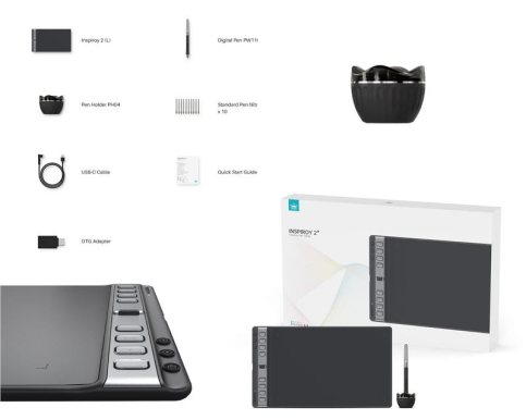 Особливості: - Скроллер, що налаштовується, аналогічний колесу прокрутки миші. Дуже зручно. - Одна клавіша може виконувати три функції. Групові клавіші призначені для керування робочим процесом. - Більш шорстка панель забезпечує природний і схожий на папір лист. - Перо PW110 без батарейок оснащено технологією Huion PenTech 3.0 для підвищення стабільності малювання. - Художники-шульги також можуть поринути у творчість завдяки можливості повороту на 180°. - Завдяки компактним розмірам та невеликій вазі графічний планшет зручно носити із собою. - Сумісність із ОС: Windows, macOS, Linux, ChromeOS, Android та HarmonyOS. Простіше навігація, легше використовувати Завдяки висоті панелі (на 2 мм вище поверхні малювання), різниці в кольорі між клавішами і панеллю, а також горбикам на клавішах стало набагато легше орієнтуватися. Крім того, Inspiroy 2 включає дуже зручний скроллер, чутливість якого можна регулювати в драйвері, подібно колесу прокручування миші. Одна клавіша натискання і три функціональні клавіші Компанія Huion вперше додала в Inspiroy 2 три групи клавіш. Таким чином, кількість клавіш може бути збільшена з 8 до 24, що дозволяє реалізувати більше функцій у додатку та значно спростити робочий процес. Крім того, можна налаштувати клавіші за допомогою драйвера. Не заучуючи їх, можна побачити функцію кожної клавіші в інтерфейсі Press Keys View. PenTech 3.0 подарує вам всебічну насолоду Inspiroy 2 поставляється з пером PW110 без батарейок, яка тонша, ніж PW517. Перо збільшує довжину силіконового захоплення і утоплює дві програмовані кнопки пера для запобігання випадковому натисканню. Всі ці вдосконалення підвищують зручність використання. Ви, як і раніше, можете насолоджуватися функцією підтримки нахилу, стабільністю малювання завдяки більш короткій відстані висування та 8192 рівням чутливості до натиску. У комплект поставки також входить ергономічний утримувач для пера. Немов справжній папір Inspiroy 2 дозволяє збільшити тертя панелі на 20% порівняно з попередником. Ви можете легко зосередитись на малюванні завдяки матовій текстурованій поверхні та колірній комбінації насиченості. Сумісність з телефоном та планшетом Крім ПК, Inspiroy 2 також сумісний з телефонами та планшетами на базі Android та HarmonyOS, що значно розширює сумісність і дозволяє легко підключити його до вашого пристрою, будь ви початківець або професійний художник. Візьміть його із собою Inspiroy 2 має меншу ширину та загальну товщину менше 1 см, що дозволяє легко упаковати планшет у рюкзак для малювання у дорозі. Що ще важливіше, тонший корпус знижує неприємні відчуття в області зап'ястя під час роботи. Доступний і для шульги Порт зарядки Type-C розташований в центрі лівого боку планшета з пером. Що стосується загального дизайну, то клавіші для натискання та скроллер розташовані симетрично. Якщо ви шульга, ви можете відрегулювати планшет на 180 ° в драйвері. Якщо ви часто використовуєте вертикальний монітор для роботи, ви можете відразу повернути планшет на 90 °. Широка сумісність з ОС Inspiroy 2 працює на Windows, MacOS, Linux, ChromeOS, Android і HarmonyOS, що дозволяє вільно перемикатися між ПК, телефоном Android і планшетом. Характеристики Модель: H1061P. Технологія пера: без батареї EMR. Клавіші: 8 клавіш. Функціональні клавіші: 3 групи клавіш + 1 скроллер. Робоча область (режим ПК): 266.7x166.7 мм. Робоча область (режим Android): 166.7x83.35 мм. Рівні тиску: 8192 рівня. Роздільна здатність пера: 5080 LPI. Швид