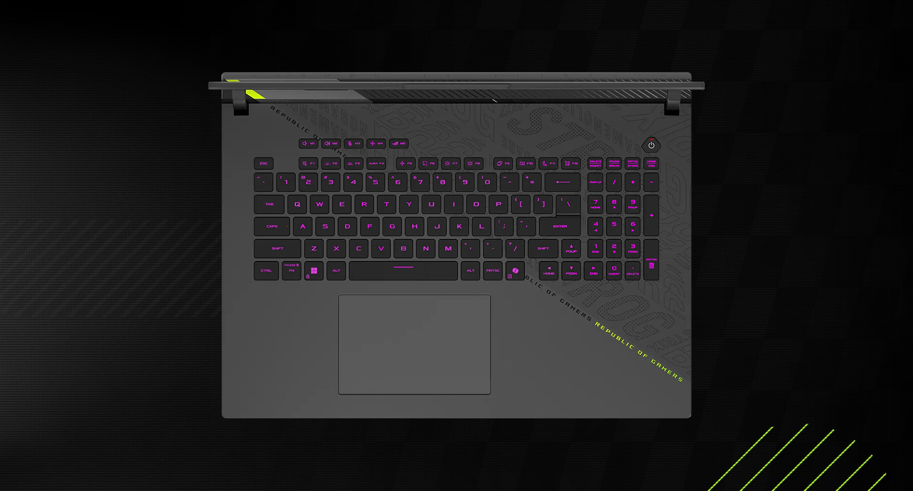 Часом перемогу від поразки може відділяти одне натискання клавіші, тож ASUS оснастили Strix G18 повнорозмірною клавіатурою, призначеною забезпечувати перемогу. Завдяки технології раннього спрацювання клавіш - Overstroke - ноутбук краще контролюється під час роботи та гри, а це означає менше натискань на клавіші та кращу швидкодію. Ця технологія орієнтована на геймерів: проміжки між функціональними клавішами допомагають інтуїтивно розпізнавати клавіші, а спеціальні гарячі клавіші забезпечують швидкий доступ до тих команд, які часто використовуються. Великі клавіші навігації забезпечують точніше керування в розпалі бою. Великий тачпад полегшує навігацію в усіх програмах, а повноколірне підсвічування клавіш надає безмежні можливості для персоналізації. Ви також можете створювати різні схеми для кожної гри в Armoury Crate, щоб кожна гра відчувалася по-своєму.