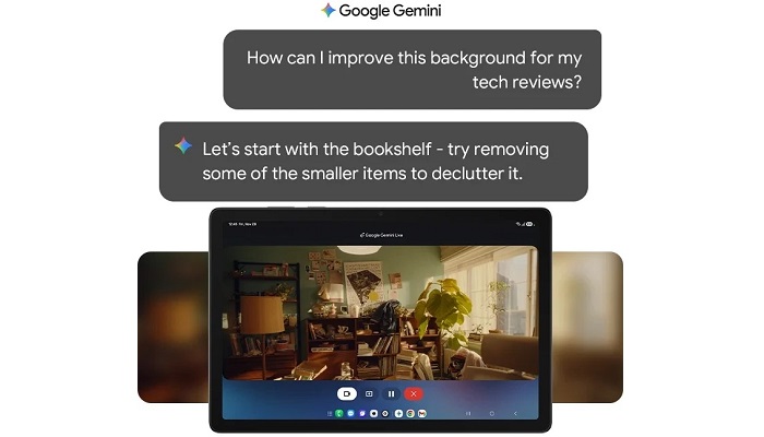 Спілкуйтеся з Google Gemini через камеру Galaxy Tab A11+ — утримайте бічну кнопку, поділіться зображенням чи екраном і отримайте поради та відповіді в реальному часі.