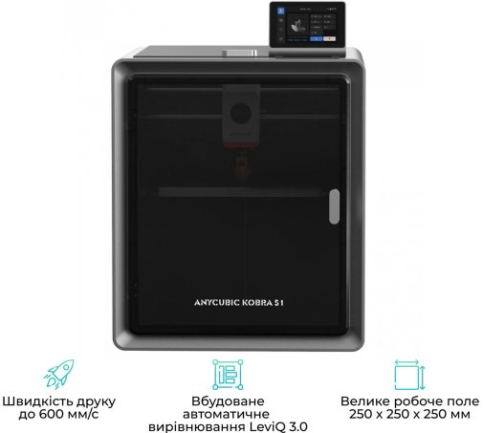 Відкрийте для себе новий рівень 3D-друку з Anycubic Kobra S1 — революційною моделлю, яка поєднує в собі неперевершену швидкість, високу точність та інтуїтивне керування. Цей принтер розроблений для тих, хто цінує ефективність, комфорт та гнучкість у кожному етапі роботи. Завдяки інтелектуальному підходу до конструкції Anycubic Kobra S1 стане вашим незамінним інструментом для втілення будь-яких креативних проєктів — від інженерних деталей до дизайнерських макетів.