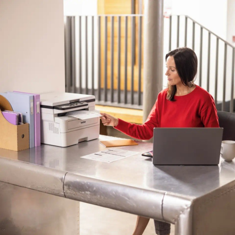 Brother DCPB7600DYJ1 має енергоефективний дизайн (рівень шуму лише 50 дБ у режимі друку) і компактні розміри, що робить його зручним для розміщення. Додатковою перевагою є низька вартість друку завдяки високопродуктивним тонерам.
