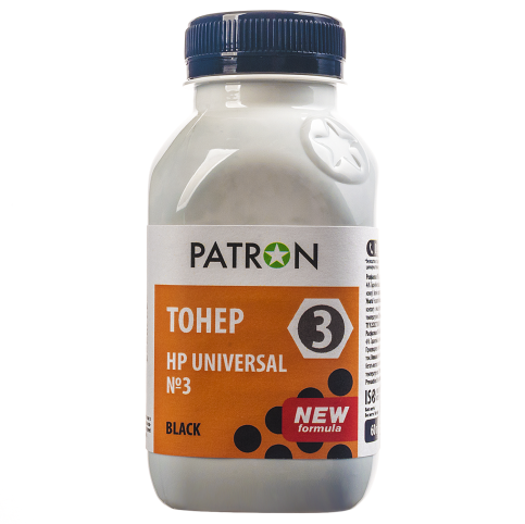 Тонер PATRON HP Універсальний №3 (LJ P1005/P1505/P1102) У ФЛАКОНІ 60 г - LJ P1005/ 1006 (CB435A); LJ P1102 Series , M1132/ 1212 Series (CE285A); LJ P1505 Series, M1120/ 1522 Series (CB436A); P1566/ 1606, M1536 Series (CE278A); LJ P2014/ 2015 Series, M2727mfp (Q7553A/ X); LJ P2035/ 2055 Series (CE505A/ X); LJ P3005 Series, M3027/ 3035 Series (Q7551A