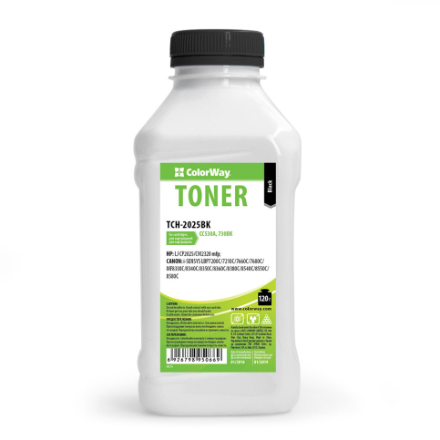 Тонер Colorway HP CLJ CP2025/2020/CM2320 Black 120g/bottle - CC530A, 730BK для принтеров: HP: LJ CP2025/CM2320 mfp,; CANON: i-SENSYS LBP7200C/7210C/7660C/7680C/MF8330C/8340C/8350C/8360C/8380C/8540C/8550C/8580C