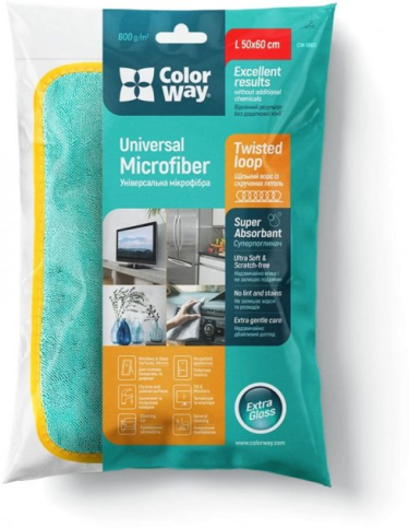 Мікрофібра ColorWay для універсального застосування 600gsm 50х60см - щільність – 600 г/м2; екстра поглинаючі властивості – вбирає до 600% води від власної ваги; підходить для сухого та вологого прибирання будь-яких поверхонь;