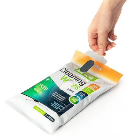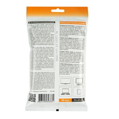 Чистячі серветки ColorWay для чищення екранів, моніторів, ноутбуків, телевізорів, смартфонів, комп’ютерів, периферії та іншої офісної та домашньої електроніки. Призначені для вологого чищення сильних забруднень, плям, потертостей, пилу та інших плям різного ступеня забрудненості. Серветки виготовлені з високоякісного матеріалу і легко відриваються. Абсолютно нейтральні на запах. Після чищення не залишають розводів, швидко висихають, забезпечуючи відмінний результат. Упаковка серветок зручна для перенесення, що дозволяє легко брати їх із собою у поїздки чи офіс. Серветки мають розмір 15х20 см, що зручно обробляти різні розміри екранів. В упаковці міститься 40 серветок, що чистять, розміром 15х20 см. Це не тільки зручно для ретельного очищення екранів різних розмірів, але також надає достатню кількість для тривалого використання.