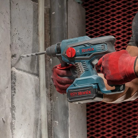 Надійна батарея 20 В живить перфоратор Ronix 8910, найпотужніший серед бездротових інструментів Ronix серії Lasting. Завдяки водостійкому та безколекторному двигуну гарантується більш тривалий термін служби та надійність. Крім того, користувачам доступні чотири функції: свердління, свердління з ударом, довбання та вивільнення. Швидкість холостого ходу 0-1400 об/хв дозволяє інструменту краще передавати вищий крутний момент двигуна. Крім того, обмежувач крутного моменту призначений для захисту від перевантаження по крутному моменту. Ця система запобіжної муфти забезпечує безпеку як для машини, так і користувача.