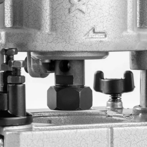 Цанга є фантастичним утримувачем інструменту з ємністю від 6 мм до 8 мм. Завдяки системі блокування шпинделя можна безпечно змінювати біти. З бітами діаметром 6 мм або 8 мм із цією цангою у вас не виникне проблем із використанням інструменту для різних завдань та створення складних форм у процесі деревообробки.