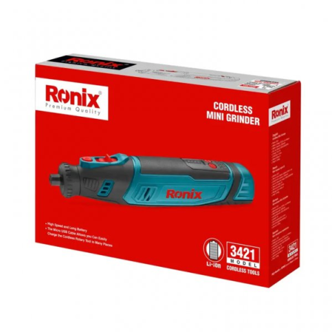 Акумуляторний гравер Ronix 3421 оснащений двигуном постійного струму на 8, який розвиває швидкість до 30000 об/хв і передає її на 3.2-міліметровий тримач. Швидкість можна налаштувати в 5 різних режимах, від 5000 до 30000 об/хв, залежно від робочих потреб. Залежно від свого основного призначення та типу роботи, гравер має невеликий розмір і дуже легку вагу, завдяки чому він легко поміщається в руці та може працювати протягом тривалого часу без будь-якої втоми для користувача.