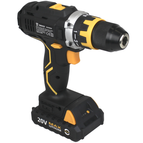 Акумуляторний дриль DEKO 15912 20V max 1/2 дюйма з максимальним моментом, що крутить, 42N.m поєднує в собі Подвійний діапазон швидкості і 15 положень зчеплення в компактному розмірі, який забезпечує точний контроль для свердління дерева, металу, пластику, і всі завдання затвердіння. Максимальна ємність свердління 13 мм для металу та 35 мм для дерева.