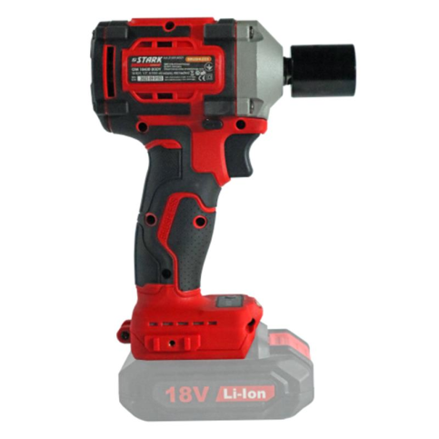 Stark CIW-1840B Body – акумуляторний ударний гайковерт для закручування та відкручування гайок. Гайковерт Stark CIW-1840B не комплектується акумулятором. Переваги акумуляторного гайковерта Stark CIW-1840B: побудований на базі безщіткового двигуна, який відрізняється високою надійністю, простотою в обслуговуванні та низьким енергоспоживанням; модель має посадковий квадрат 1/2” для приєднання торцевих головок з аналогічним отвором; металевий корпус редуктора забезпечує надійний захист внутрішніх елементів, знижує рівень нагріву; вбудоване LED підсвічування дозволяє працювати в погано освітленому приміщенні, а також у важкодоступних місцях; регулювання обертів (макс. 2000 об/хв) дозволяє працювати як з крихкими матеріалами, з якими важливо не перестаратися, так і з сильно затиснутими гайками; виконує 2400 уд/хв.; високий крутний момент - 400 Нм; мала вага та зручна форма гайковерта забезпечують комфортну роботу протягом тривалого часу; зручна гумова рукоятка надійно лягає в руці і не ковзає в процесі роботи; працює від літій-іонного акумулятора 18 В; маса – 1,7 кг; країна бренду: Німеччина; країна-виробник: Китай. Гайковерт акумуляторний Stark CIW-1840B Body комплектується: зарядним пристроєм. Stark CIW-1840B Body – компактний та зручний гайковерт із силою затягування 400 Hм забезпечить якісну мобільну роботу на будівельному об’єкті, в майстерні, на СТО тощо.