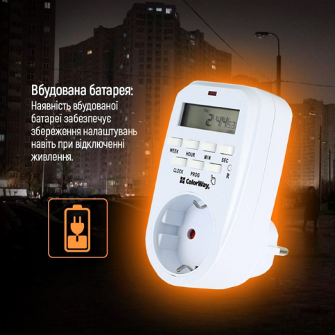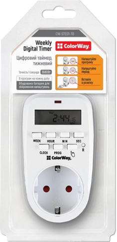 Ця електронна таймер-розетка обладнана цифровим таймером, що дозволяє автоматично вмикати та вимикати живлення у визначені інтервали часу. Модель відрізняється якісним виконанням, докладною інструкцією користувача та великим РК-дисплеєм, що робить налаштування та управління простими та зручними. Таймер-розетка дає змогу контролювати роботу різних побутових пристроїв за розкладом, без необхідності вашого втручання — достатньо лише задати потрібну послідовність дій. Вона чудово підходить для автоматизації освітлення та управління електроприладами як у житлових, так і в офісних приміщеннях.