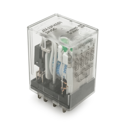 Реле електромагнітне CHINT JZX-22F(D)/4Z, DC24V, контактна група 4CO+4NO, (0,9~1,2) Вт, номінальний ток 3А, катушка 640×(1±10%)Ом, 27,5*21,5*35,5мм