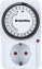Розетка оснащена добовим таймером, який дозволяє налаштувати включення та вимикання пристроїв протягом 24 годин з кроком у 15 хвилин. Програма повторюється щодня, без потреби в повторних налаштуваннях. Основна перевага цієї моделі — компактний розмір і зручність програмування. Налаштуйте поточний час і бажані інтервали, а потім просто вставте таймер у розетку. Ваш пристрій буде автоматично вмикатись і вимикатись у потрібний час.