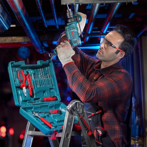 - Високоміцний довговічний двигун потужністю 650 Вт для найкращої продуктивності при свердлінні та ударному свердлінні