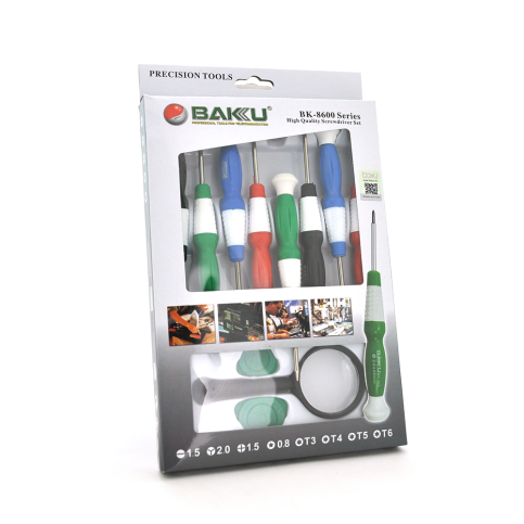 Набір інструментів BAKKU BK8600 – складається з 11 предметів, які забезпечать якісні точні роботи з ремонту гаджетів та пристроїв з дуже маленькими болтиками. На кожен маленький болтик у наборі є викрутка, тому майстер на два рази впорається з будь-якими завданнями.