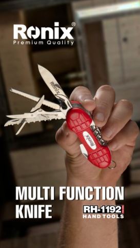 Багатофункціональний ніж RH-1192 важить 132 г, довжина леза становить 65 мм, а довжина у закритому стані – 91 мм. Він оснащений кількома інструментами, включно з лезом (ножем), витягачем гачків (гачковий очищувач), рибочисткою, пилкою, ножицями, консервним ножем, відкривачкою для пляшок, шліцьовою викруткою, хрестоподібною викруткою, криголамом (шкіряним діркопробивачем), очищувачем для нігтів, пилкою для нігтів, голкою, штопором і кільцем для ключів. Оскільки він виготовлений з неіржавіючої сталі 420, корпус дуже міцний і надзвичайно твердий. Технологія, що застосовується для його виробництва, також підвищила його експлуатаційні якості. Крім того, запобіжні замки, які допомагають легко прикріплювати невеликі інструменти, знизили ризик отримання травм під час їх використання. Крім того, він забезпечений легкою, міцною ручкою з ABS.
