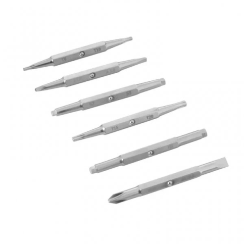 На додаток до вищезгаданої ручки з храповиком, Ronix RH-2725 також постачається з двостороннім з'єднувачем довжиною 115 мм. До цього з'єднувача приєднуються такі подвійні насадки довжиною 75 мм: 1 х PH3 - SL8, 1 х PH2 - SL6, 1 х PH1 - SL5, 1 х S2 - S3, 1 х H4 - H5, 1 х 2 - 3, 1 х T15 - T20 і 1 х T8 - T10. Всі вони поставляються в блістерній упаковці.