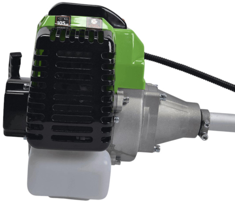 Пристрій оснащений двотактним двигуном внутрішнього згоряння. За допомогою встановлених на робочу головку ріжучої котушки або ріжучого ножа здійснюється скошування трави.