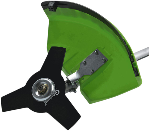 Наявність захисного кожуха захищає оператора та довкілля від розльоту скошеної трави, каміння та твердих предметів. Оснащення виробу наплічним або ранцевим ремнем дозволяє звільнити руки оператора у процесі роботи.
